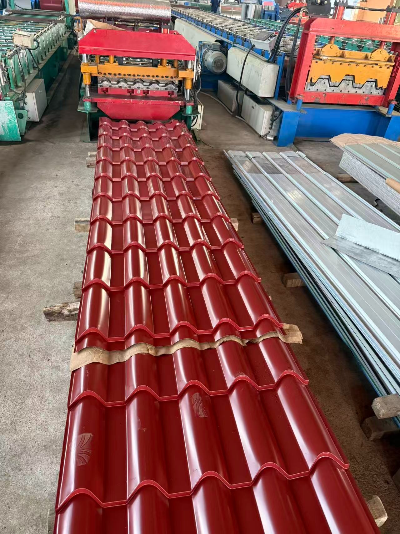 Durable steel tile sheet with reinforced curved profile for long-term use.