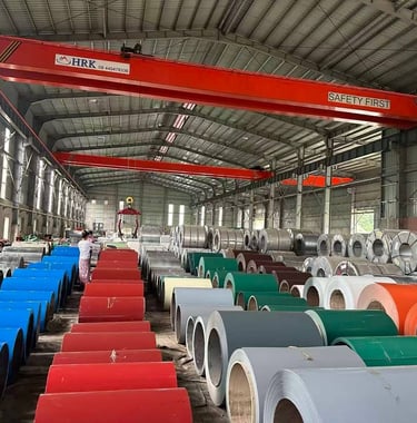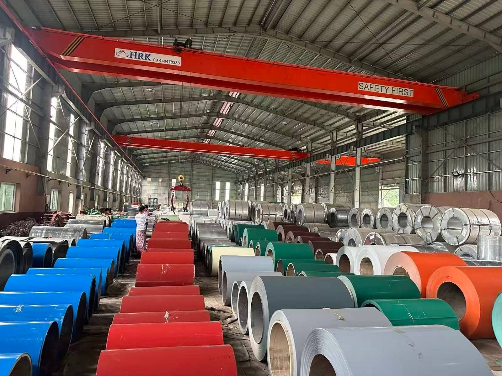 Pre-painted galvanized steel coil suitable for roofing sheet production and fabrication.